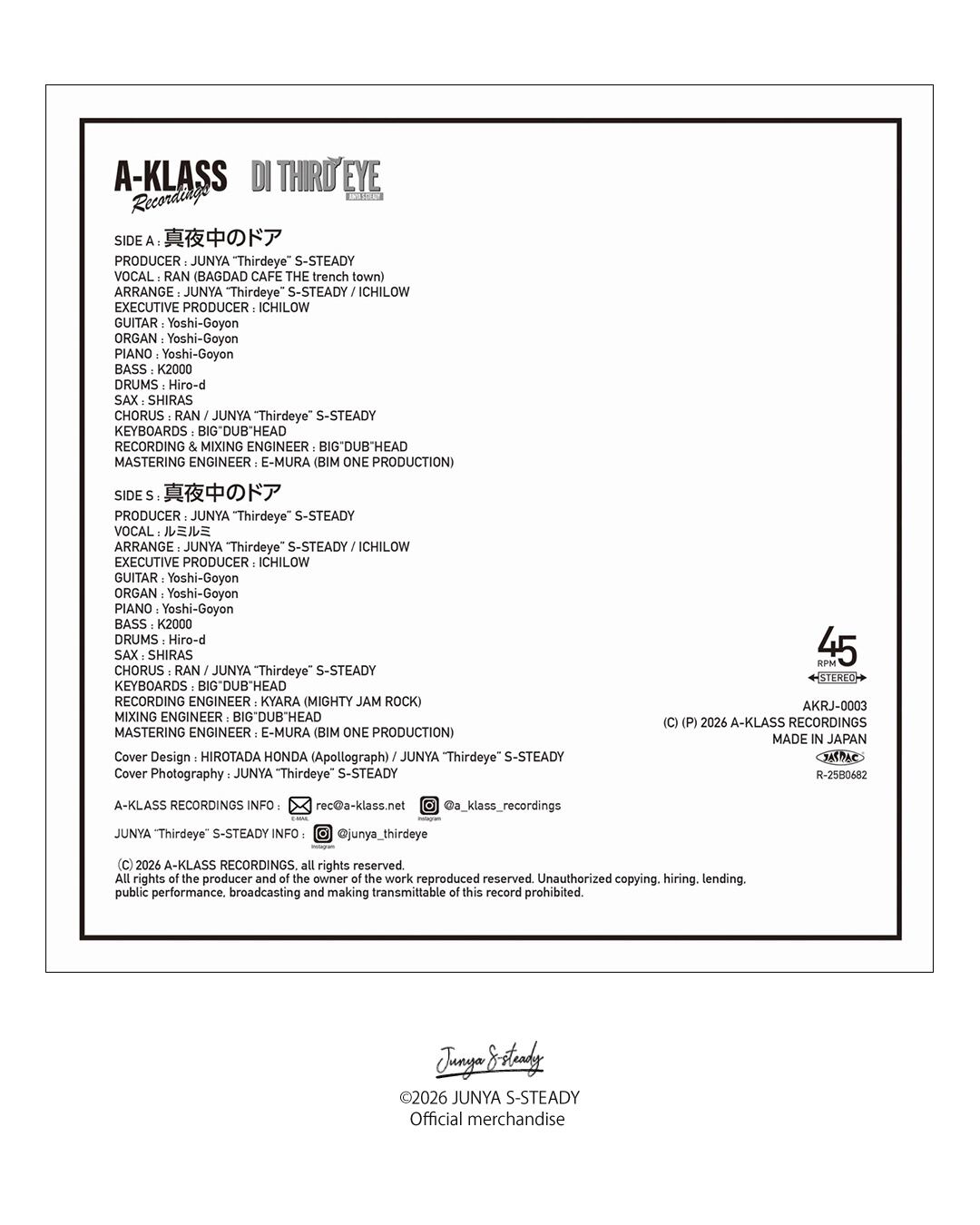 JUNYA S-STEADY プロデュース・プロジェクト第2弾。