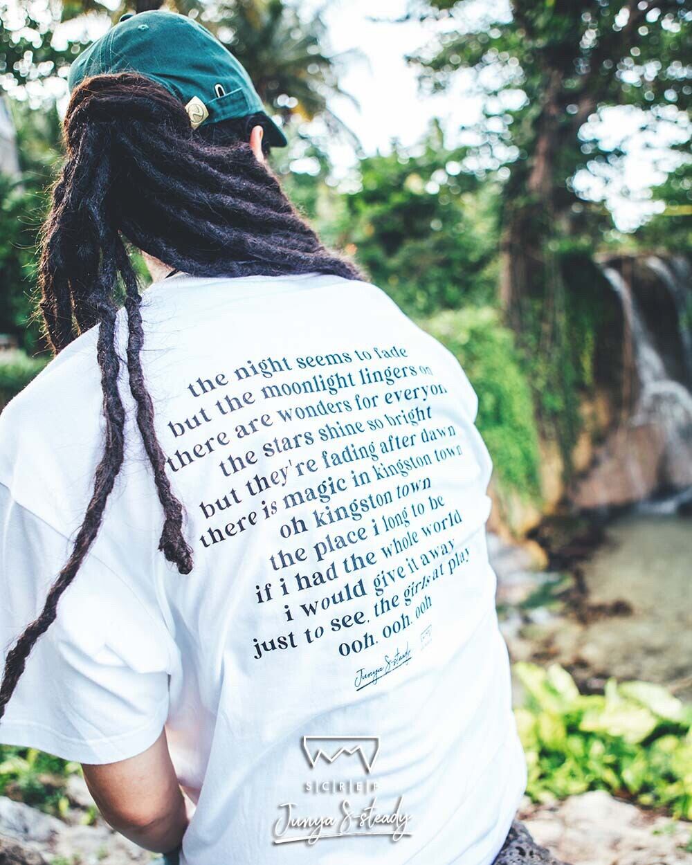 Kingston TownのリリックをバックプリントしたTシャツ。